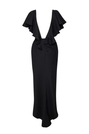 Rochie maxi croită pe bie, cu decolteu V in fata si la spate, roșu peliculizat cu patina lucioasa.